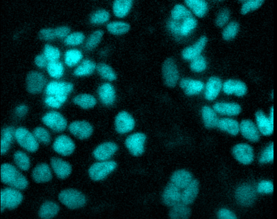 Time-lapse live-cell imaging. CRISPR-HiBiT BRD4 cells were treated with MZ1, a BET bromodomain degrader. Uniform loss of BRD4 was observed over 2 hours. Imaging was performed using an Olympus LV200 System.