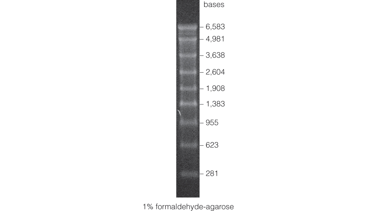 • Recommended loading: 3μl (prepared in formaldehyde/MOPS buffer and separated onto a 1% formaldehyde-agarose gel using MOPS running buffer)